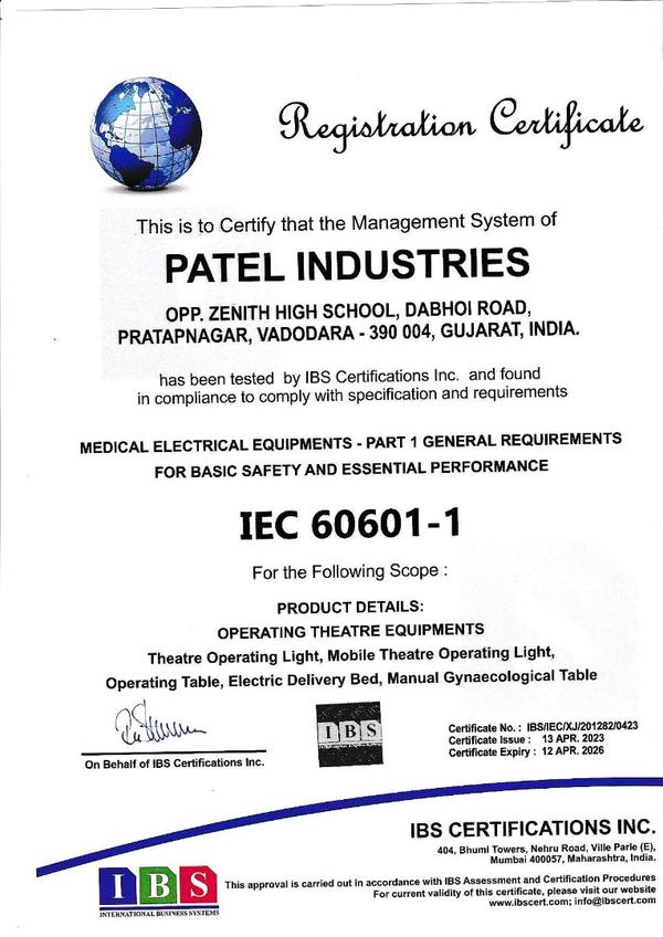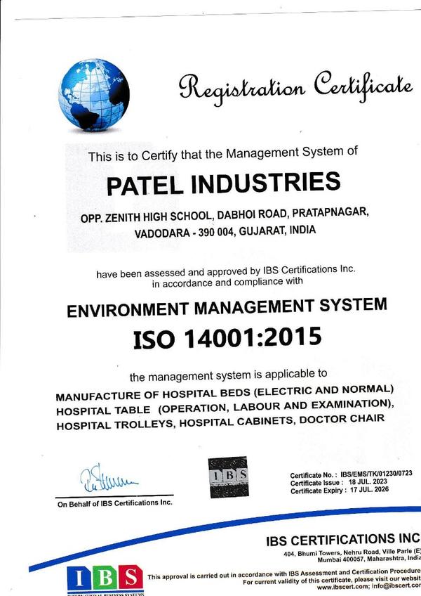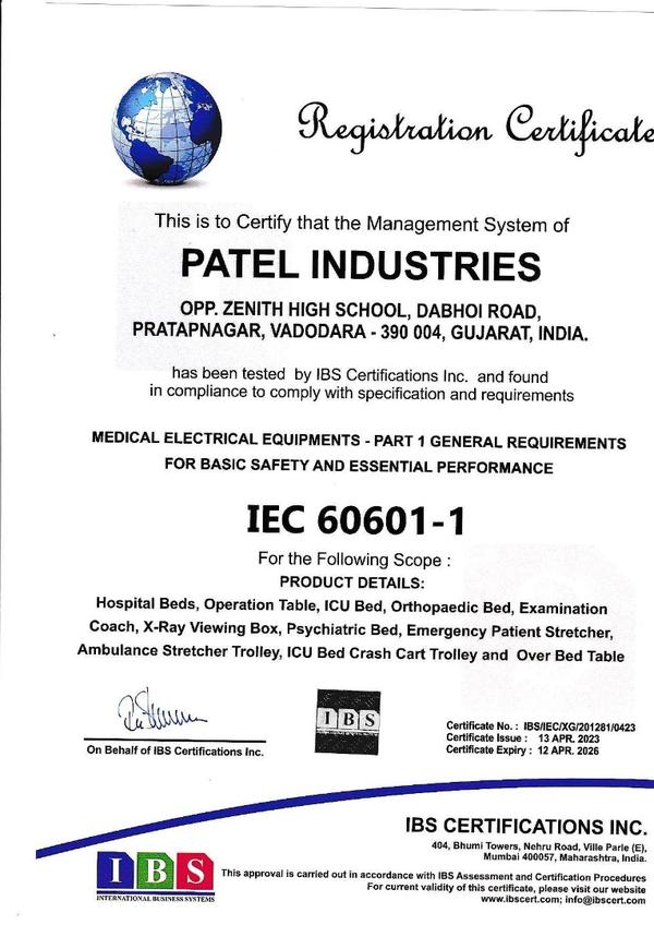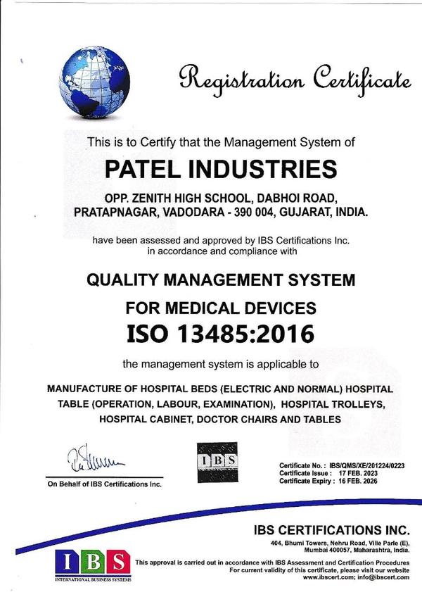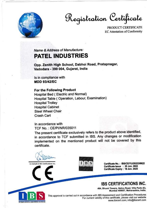 Patel Industries is the leading innovator and manufacturer of medical furniture in India, with a focus on electronic beds, stretchers, delivery beds , examination couches, medical carts and trolleys with a wide product spectrum consisting of more than 300 products, the company responds to any demand of medical furniture from hospital furniture segment, with a exibility to provide caregivers and patients with products between luxury to cost effec ... View More